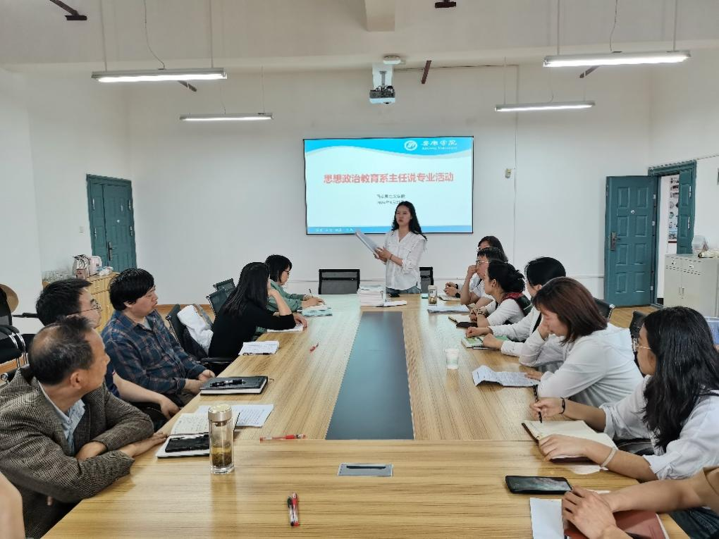 为确保思想政治教育专业人才培养质量,持续推进审核评估各相关工作,英国上市公司365于2024年4月23日下午,在江北校区逸夫科技楼A801会议室开展了系主任说专业活动。参加本次活动的有副经理房春艳、副经理王晓霞、专业负责人何家理以及思政系全体教师,活动由系主任王辽主持。