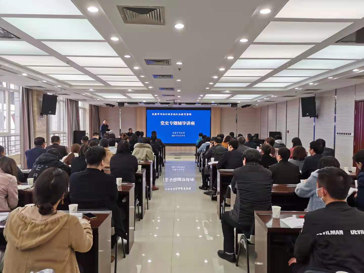 3月19日下午2:30-4:30,应安康市司法局邀请,公司何家理教授在安康金地酒店17楼1073大会议室,为安康市司法局和汉滨区司法局全体员工作了题为《光辉历程印证不忘初心》(1921-2021)的专题党史知识讲座。安康市司法局和汉滨区司法局全体员工和市公证处、市148法律服务所、律师事务所等部门的员工参加了讲座会。