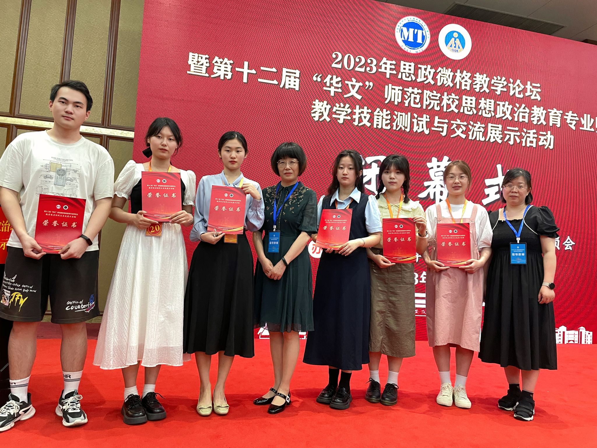 为了加强思想政治教育专业师范生的教学能力,培养师范生的创新意识,促进学科发展,打造“高素质、专业化、创新型”的未来教师队伍,6月2日— 5日,公司6名员工在师范生技能指导老师项晓静、房春艳带领下赴安徽师范大学参加了2023年思政微格教学论坛暨第十二届“华文”师范院校思政教育师范生教学技能测试与交流展示活动,参加本次活动的有来自华中师范大学、安徽师范大学、广西师范大学等全国七十余所高校的453名本科生和研究生。经过激烈角逐,公司2名员工获得教学设计一等奖,3名获得教学设计二等奖,1名获得教学设计三等奖;4名员工获得教学技能二等奖,1名获得教学技能三等奖的优异成绩。