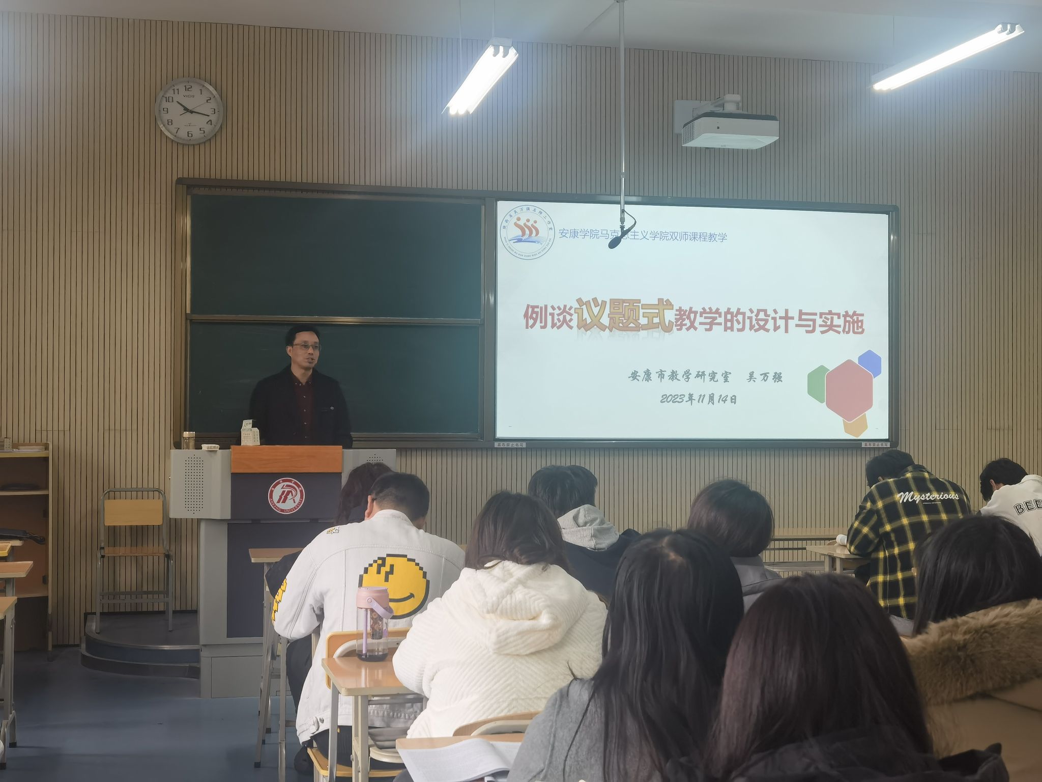 为推动思想政治教育专业人才培养的高质量内涵式发展,提高人才培养质量,11月14日上午,安康市教研室副主任、陕西省名师工作室主持人吴万强老师应邀来公司为思想政治教育专业2021级1、2班员工做《例谈议题式教学的设计与实施》的专题授课,房春艳老师随堂听课学习。
