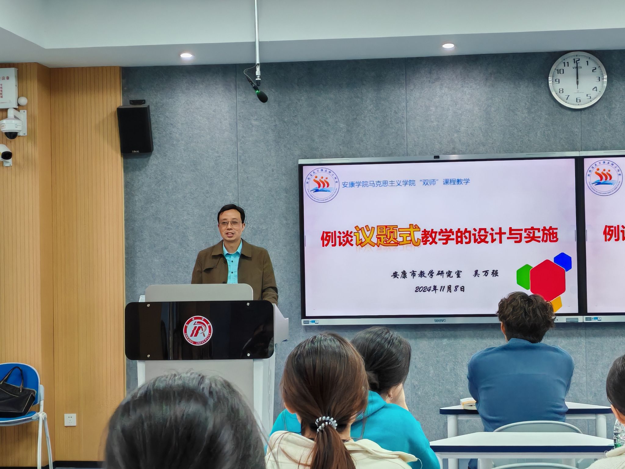 为对接基础教育现状,推进《政治学科教学论》双师课程建设,提升课堂教学效果,11月8日和19日上午,在江北1213教室,安康市市教研室吴万强老师应邀来公司做了题为《例谈议题式教学的设计与实施》的专题教学,思想政治教育专业2022级全体同学参加,房春艳、卫玳瑶两位老师分别随堂听课。