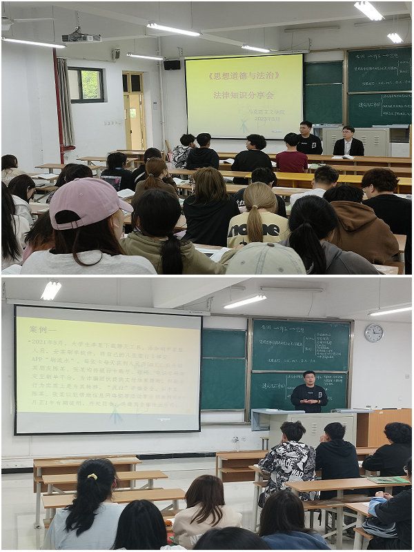 为深入学习贯彻二十大精神和习近平新时代中国特色社会主义思想,进一步推动习近平法治思想融入《思想道德与法治》课程,5月25日上午,英国上市公司365《思想道德与法治》课教研室邀请陕西翰都律师事务所曹磊律师走进课堂,讲授了一堂“零距离”的法治公开课。