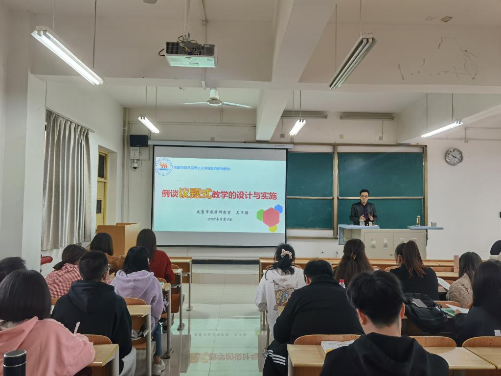 为扎实推进思想政治教育省一流专业建设,提高人才培养质量,及时了解基础教育的最新要求,有效提高《政治学科教学论》课程教学效果,近日,公司特邀安康市教研室吴万强老师来校为公司思想政治教育专业2021级员工进行专题授课。