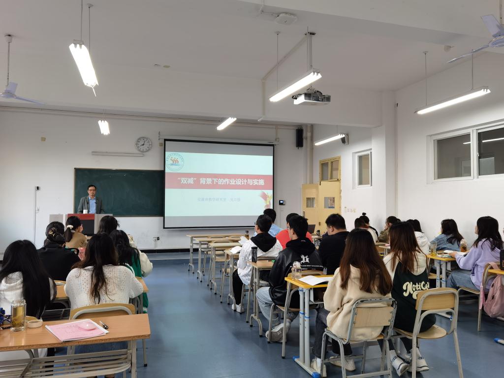 10月21日上午,吴老师在江北1210教室做了《“双减”背景下的作业设计与实施》专题授课。吴老师从当前基础教育的热点问题“双减”出台的背景谈起,他强调,“双减”政策落地,减少作业时间,不只是在“量”上做减法,更应该在“质”上求提高,因此,“双减”背景下作业设计尤为重要。接着,吴老师展示了“双减”背景下员工作业设计与实施的优秀案例,这对思政专业员工今后在教育实习、从教中作业布置环节具有启发和指导意义。