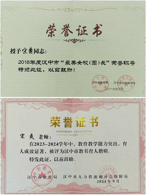 在第40个教师节之前,公司思政99届毕业员工(96级)宋爽获得首届“汉中市教书育人楷模”荣誉称号。之前还获得汉中市“最美女董事长”荣誉称号。