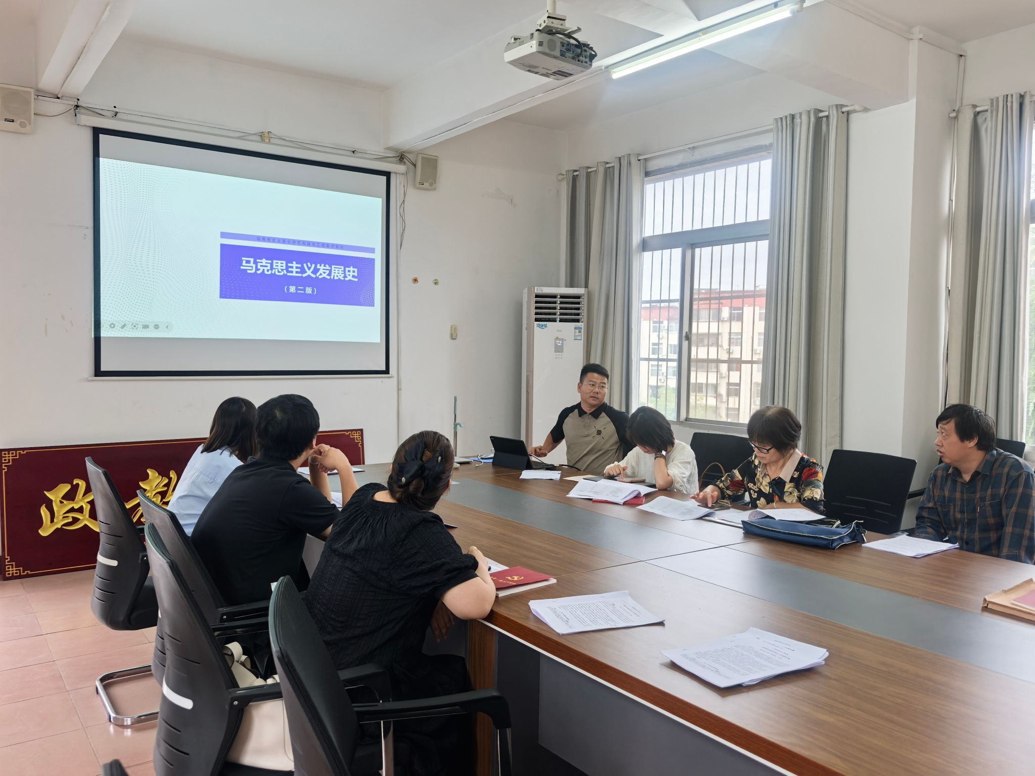 随后,李少青聚焦《马克思主义发展史》这门课进行汇报。详细解读了该课程如何以历史演进为主线串联马克思主义经典理论的形成与发展;重点说明如何通过原著选读+时代案例的教学设计,引导员工理解马克思主义的理论品格与当代价值,体现了对课程内涵建设的深度探索。