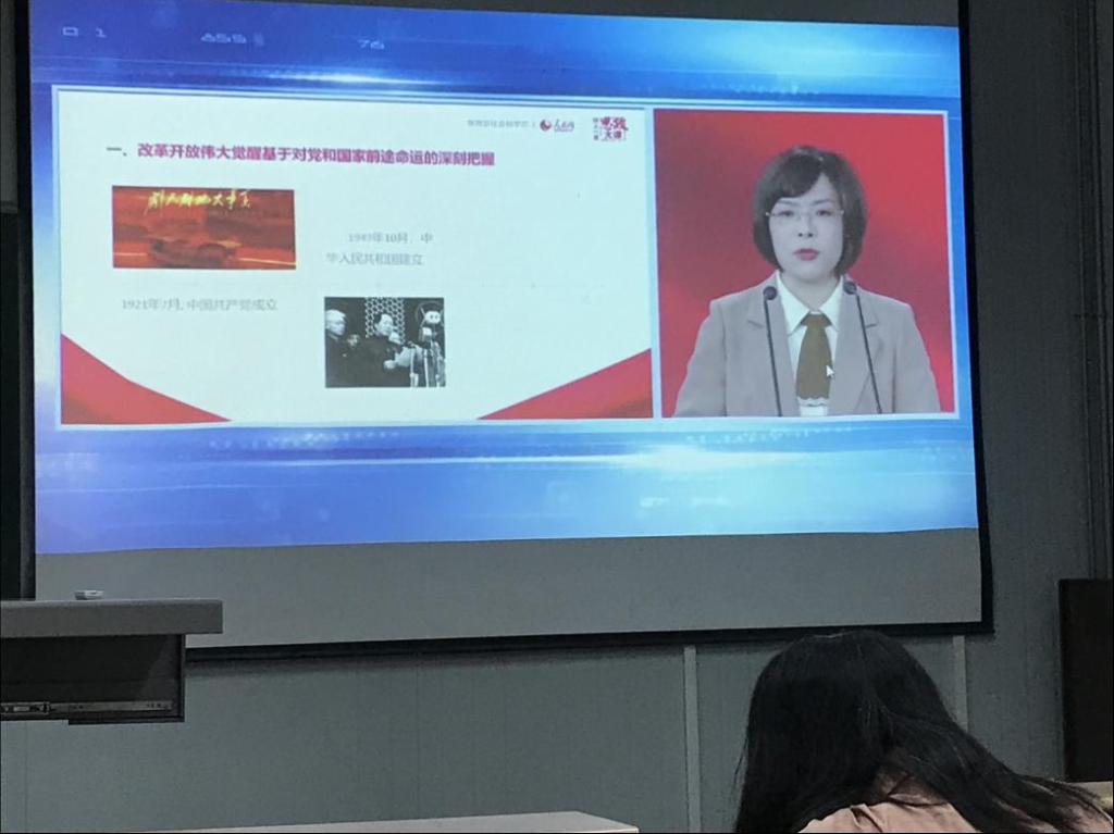 教研室全体教师一起观看了华东师范大学闫方洁、南开大学肖光文、中国人民大学王向明3位老师的授课,三位老师分别以“第一篇:大幕拉开——历史关头的抉择,为何要走改革开放之路”“第二篇:辉煌画卷——依靠创新谋发展,改革开放之路如何走”“第三篇:长风破浪——世界历史的中国答卷,改革开放的历史意义和历史启示”为题,从不同的视角对改革开放四十多年的辉煌历程进行了生动精彩地讲述,大家都感到深受启发、收获很大。课后,教研室全体教师进行了讨论与交流,并将心得、体会、感悟发布在讨论交流群中共享。