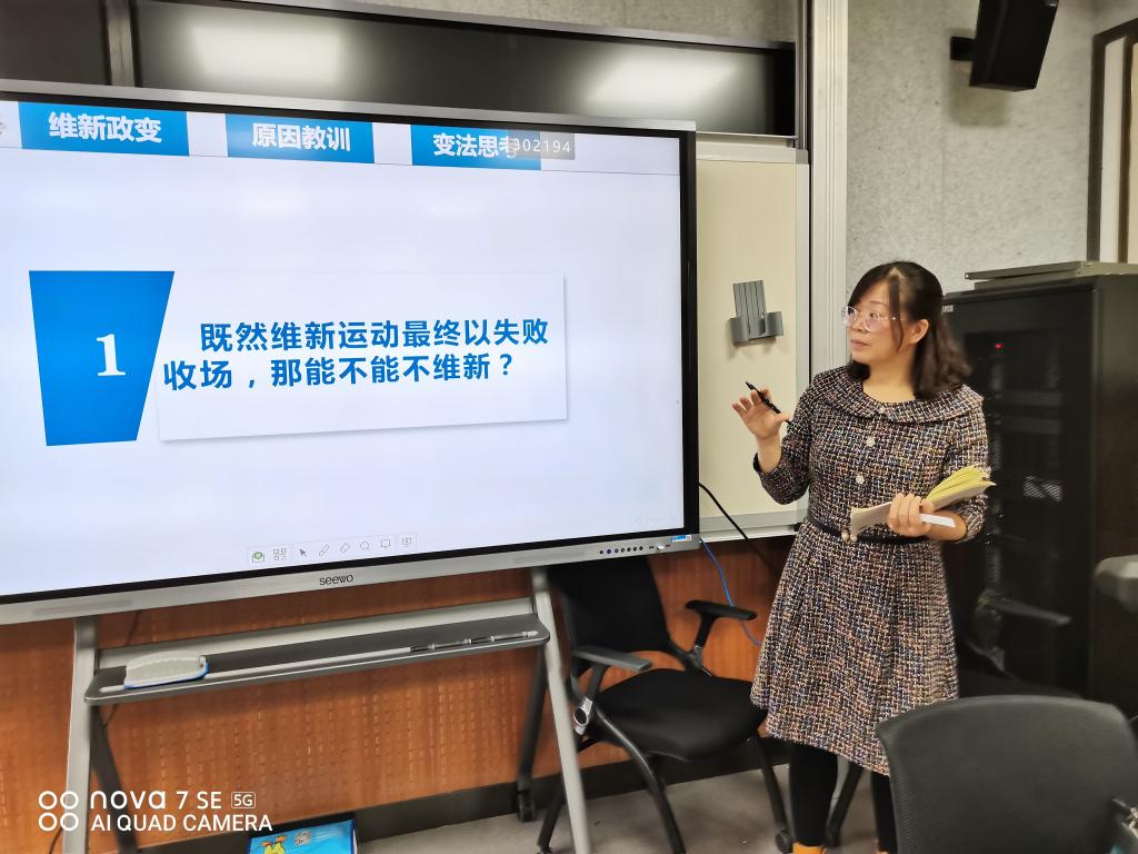 公司房春艳老师代表公司参加陕西省第二届课堂教学创新大赛,为提高房老师的参赛水平,10月7日下午,“史纲”和“马原”课教研室教师在江南校区教师技能训练中心4301教室开展教学观摩暨集体磨课活动。