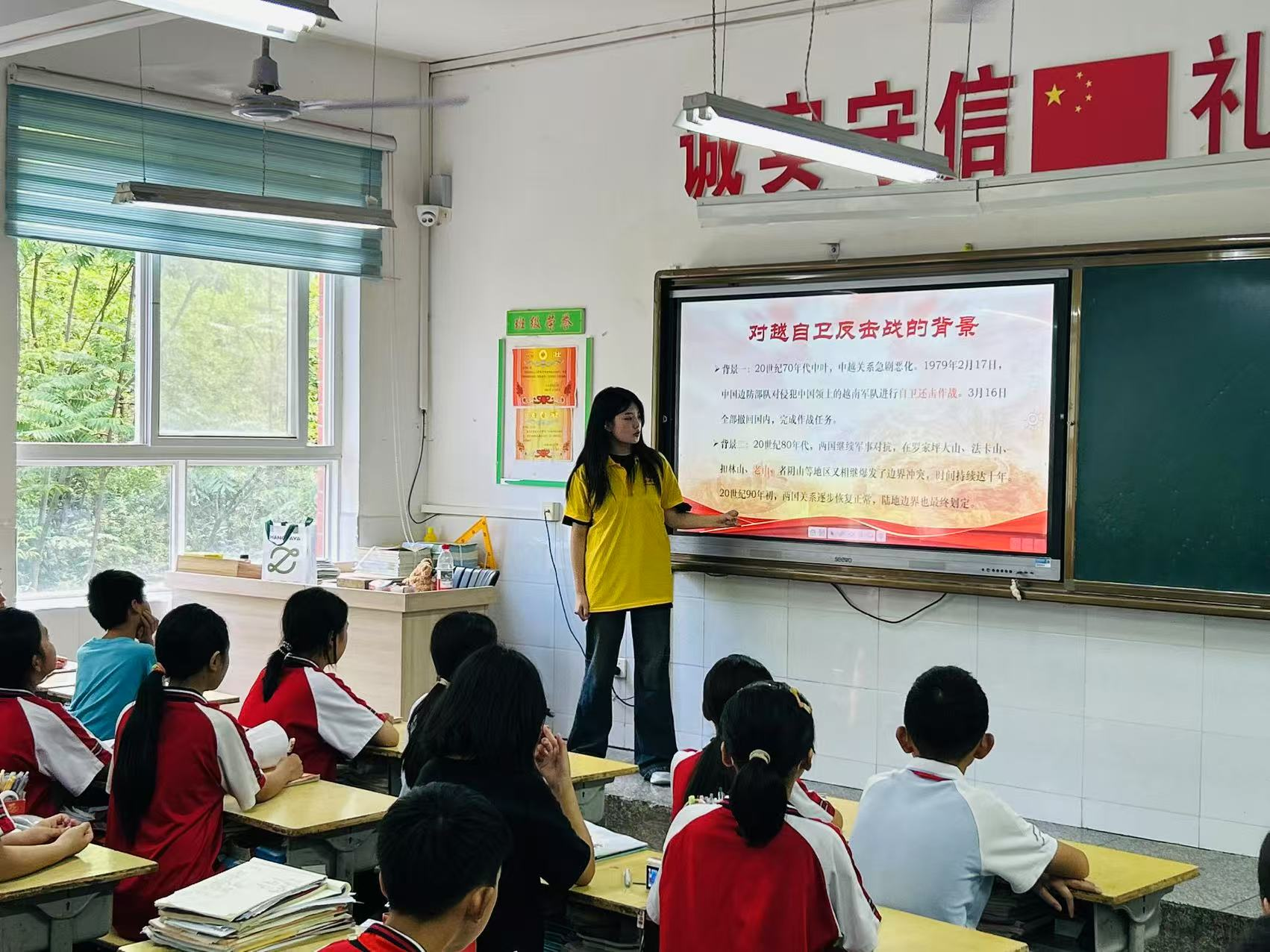 手势舞环节结束后,思政组的小老师们接棒,用30分钟带来了一堂生动的红色故事会。从革命先烈的不屈抗争,到英雄人物的无私奉献,一个个饱含温度的故事,仿佛将孩子们带回了波澜壮阔的岁月。“原来今天的幸福生活这么来之不易!”一名同学听完故事后,小声发出了这样的感慨,红色种子悄然在心中萌芽。