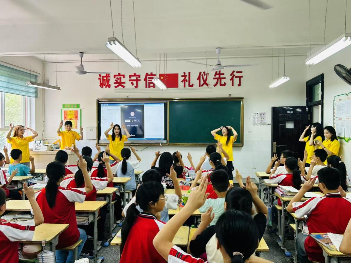活动以“分组实践”形式展开,共设“舞蹈组”“思政组”“音乐组”“美术组”四个组别,确保每个孩子都能深度参与。活动伊始,舞蹈组的小老师们率先登场,带领孩子们学习简化版手势舞。15分钟的互动里,孩子们跟着轻快节奏挥舞双手,每一个动作都透着蓬勃朝气,一张张笑脸如同盛开的向日葵,瞬间让教室充满活泼氛围。