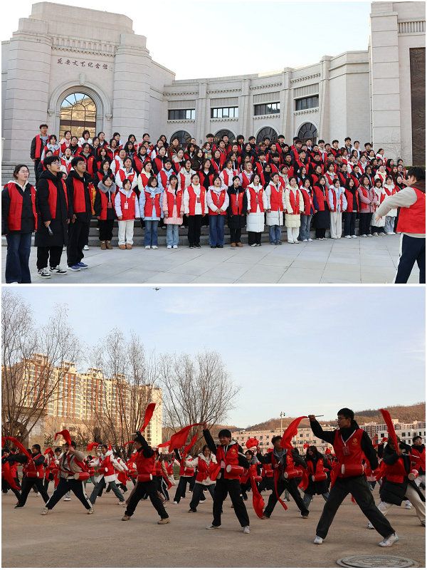 在实地观摩与现场教学的基础上,活动通过多元体验形式,让红色精神入脑入心。6日下午,实践团队走进延安文艺纪念馆、鲁艺旧址,探寻红色文艺的根脉。在延安文艺纪念馆前,同学们齐声合唱《黄河大合唱》,激昂雄壮的歌声展现了公司学子的蓬勃朝气,也表达了对祖国的无限热爱。在鲁艺旧址广场,同学们跟随专业老师学习安塞腰鼓,在欢快的氛围中感受陕北民俗文化的独特魅力,体会革命文艺凝聚人心、鼓舞斗志的强大力量,并现场进行了汇报表演。当晚,同学们观看了红秀《延安延安》,通过精彩的舞台演绎,重温革命年代青年学子投身革命的热血岁月,深刻领会到“到延安去”的时代召唤。