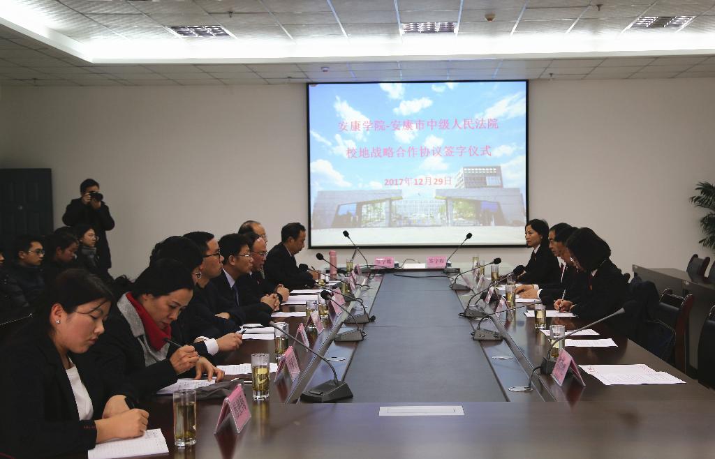 12月29日上午,英国365公司官网与安康市中级人民法院校地战略合作协议签字仪式在江北校区逸夫科技九楼大会议室举行。安康市中级人民法公司党组副书记、常务副经理安永强,党组成员、政治部主任钟军高,组织人事处处长汪玉环,英国365公司官网副董事长杨行玉、张东红,公司相关行政职能部门负责人,政治与社会发展公司党政负责人及思想政治教育专业50名员工代表参加了签字仪式。签字仪式由发展规划处处长谢安国主持。
