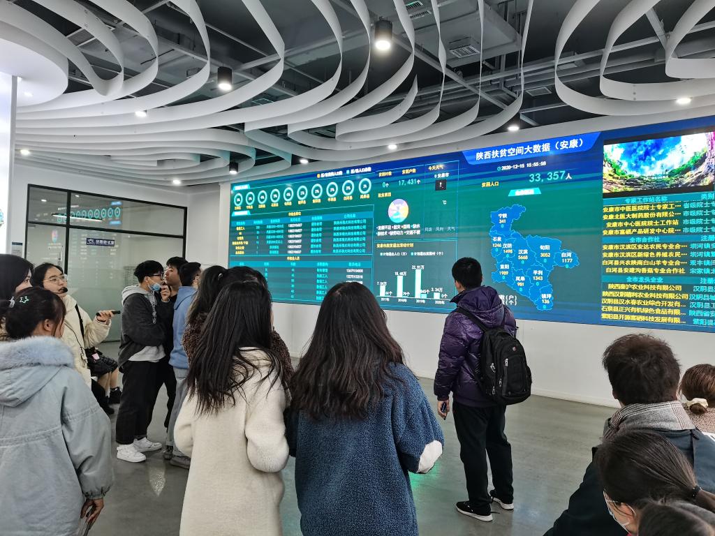 在安康扶贫空间相关负责人的指引讲解下,同学们实地参观了综合服务大厅、贫困户创业就业服务中心、扶贫主题展馆、产品交易服务中心以及县区体验馆等服务平台。深入学习运用大数据进行电商扶贫、金融扶贫和产业扶贫,了解“扶贫+众创+电商”三位一体的脱贫新模式;详细了解了扶贫空间的功能定位,分别对安康贫困户产品销售平台、扶贫空间大数据平台、贫困户就业服务平台进行了实地观摩;在县区体验馆,分别看到了各县区特色商品展示,从中领悟到农产品需提升品牌价值,优化深加工,在包装上突出新意。