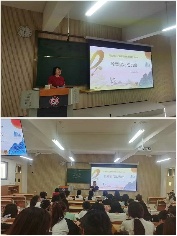 98午,思想政治教育系在江北1113教室召开2020级思想政治教育专业教育实习动员会。副经理王晓霞、系主任房春艳以及2020级65名员工参加了本次会议。会议由副经理王晓霞主持。