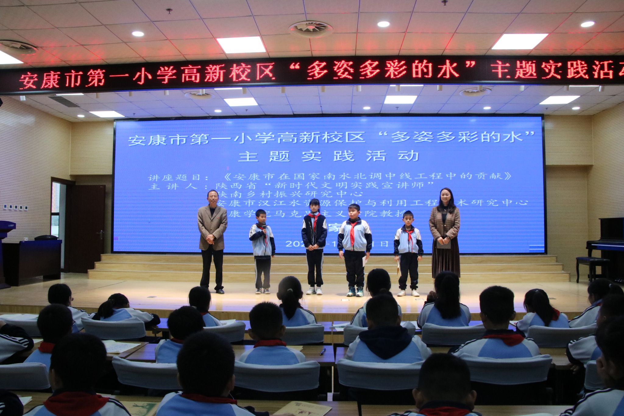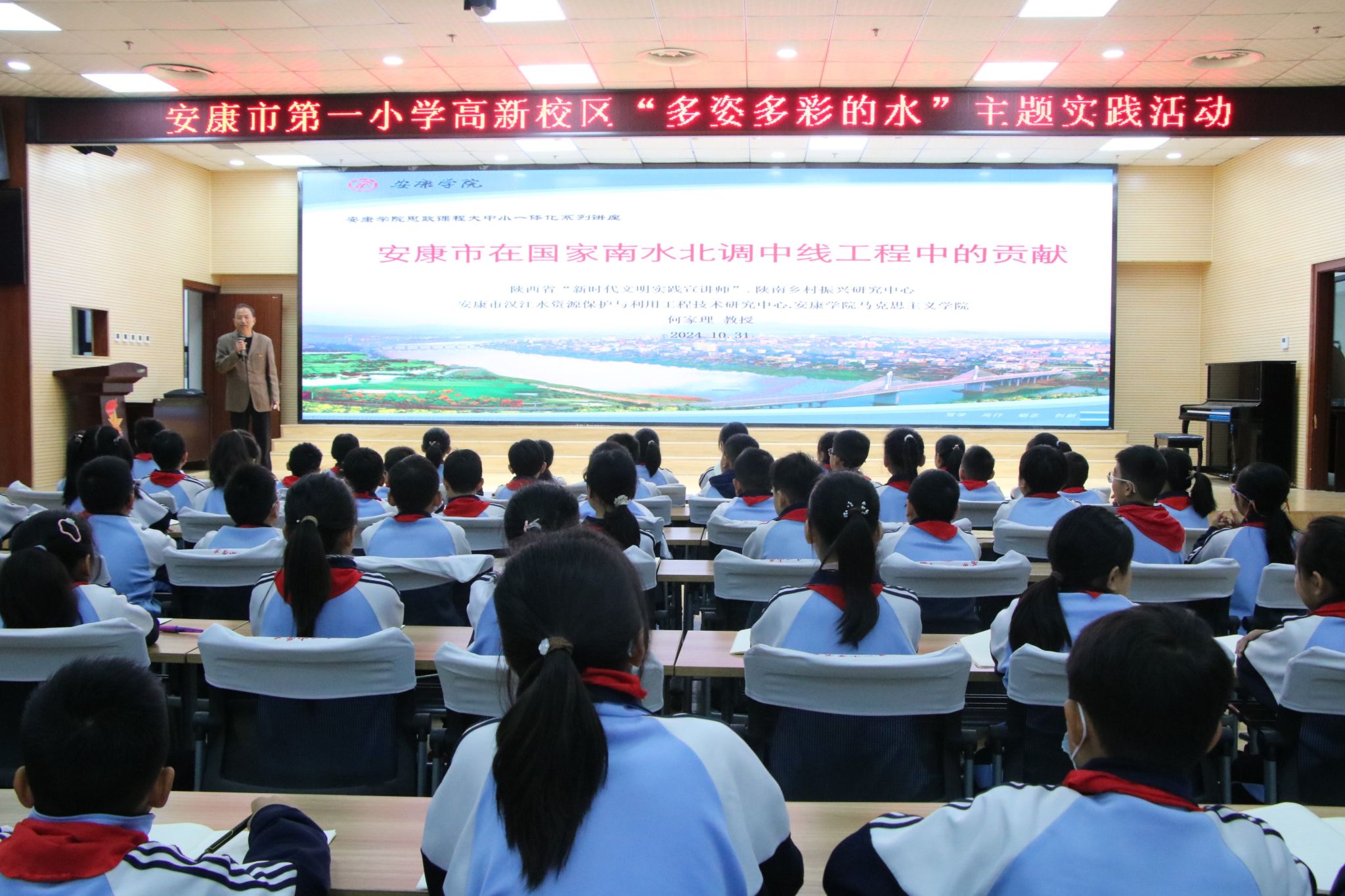 10月31日上午,安康市第一小学高新校区举行“多姿多彩的水”主题实践活动,纪念国家南水北调中线工程10周年,让师生了解南水北调工程的意义和安康市在国家南水北调中线工程中作出的贡献,增强师生护水自觉性。