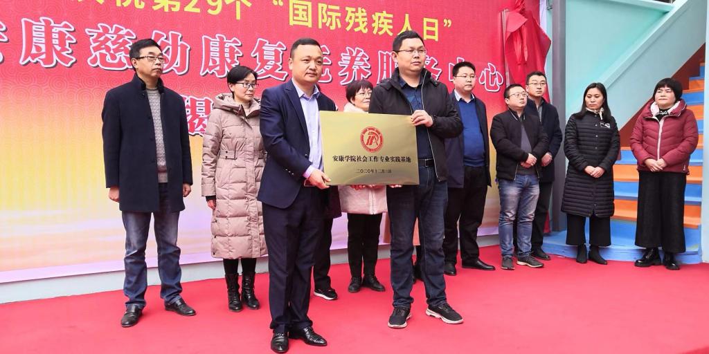 在第29个国际残疾人日(12月3日),公司社会工作专业在安康慈幼康复托养服务中心设立实践教学基地。副经理单林波与安康慈幼康复托养服务中心理事长王远峰为基地挂牌。
