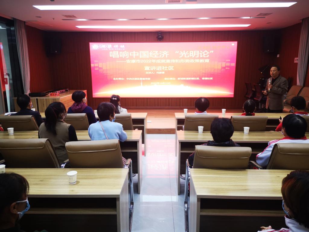 唱响中国经济“光明论”主题宣讲活动是中共安康市委宣传部设计的迎接中国共产党二十大召开系列宣讲活动之一,中共汉滨区委宣传部首先尝试将宣讲活动推进了社区。