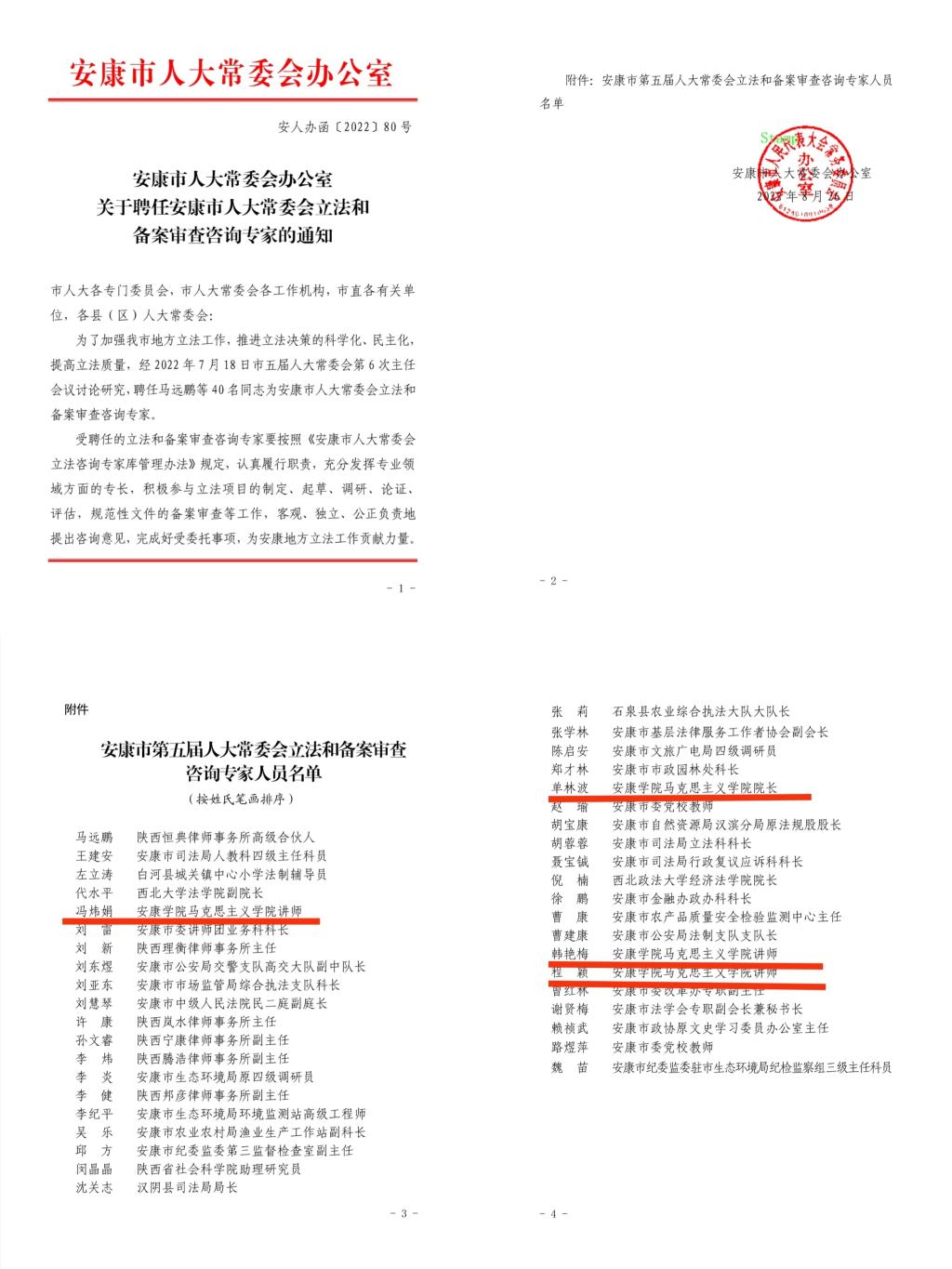 经安康市第五届人大常委会第六次主任会议讨论研究,公司单林波、冯炜娟、程颖、韩艳梅四位老师获聘为安康市人大常委会立法和备案审查咨询专家。