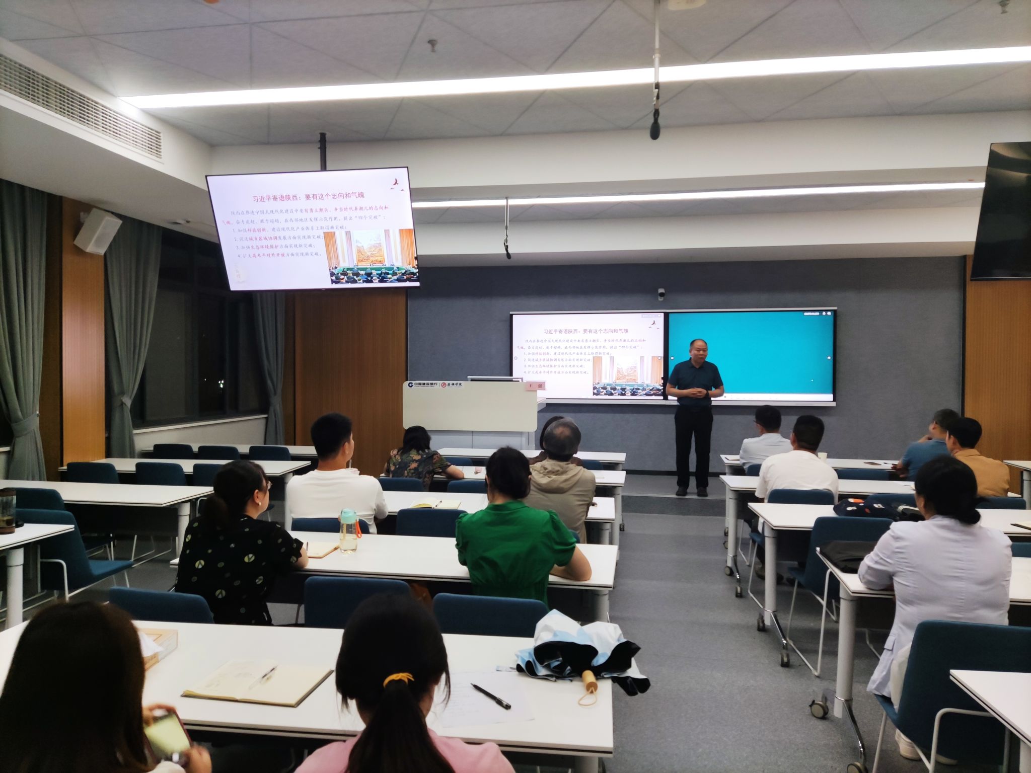 王强教授以“中国化时代化的马克思主义为什么行”为题解读了党的二十大报告。他从占据科学和道义的制高点、实践效果行;新时代十年的伟大变革、发展愿景行;建设社会主义现代化强国、执行主体行;坚持党的领导和全面从严治党等四个方面对党的二十大精神以及党的二十大提出的新思想新论断、作出的新部署新要求进行了系统宣讲,深刻阐释了中国化、时代化的马克思主义为什么行和如何将党的二十大精神融入到高校思政教育中,引导员工立志做新时代中国好青年。