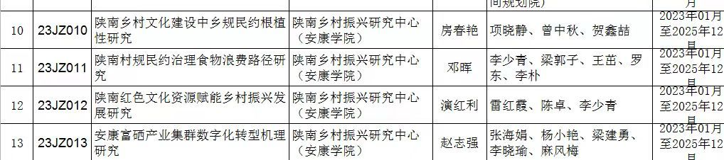 接省教育厅和英国365公司官网科研处通知,2023年陕南乡村振兴研究中心共有五项项目获得立项,其中重点研究项目立项4项,一般项目1项,具体如下:
