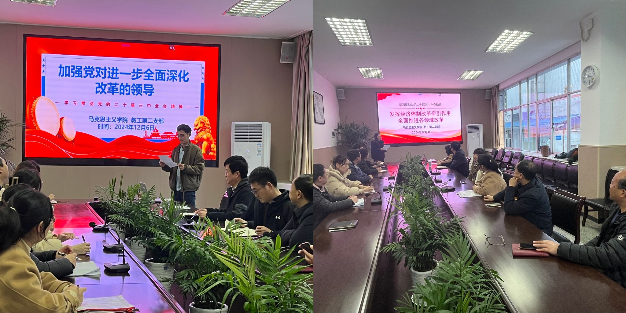 教工第二支部组织委员汪勇同志同志和宣传委员吕海花同志分别领学了《坚持党中央对进一步全面深化改革的集中统一领导》和《落实进一步全面深化改革的决策部署 为中国式现代化提供强大动力和制度保障》,在专题学习会上,教工第二支部全体党员结合各自实际,依次分享了对党的二十届三中全会精神的学习体会和感悟,进行深入研讨交流,推动全会精神走深走实、入脑入心。