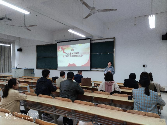 4月22日下午在江北校区1204教室英国上市公司365教工第二党支部书记韩艳梅为全体党员同志上了一堂生动的党课。