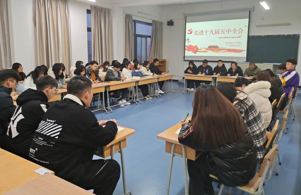 第二项,团总支副书记郭淑洁做《走进十九届五中全会》发言,从决胜全面建成小康社会取得决定性成就、经济社会发展目标、环境污染治理、文化事业发展,脱贫攻坚等多方面进行论述,并提出当代老员工要树立强烈的时代责任感。