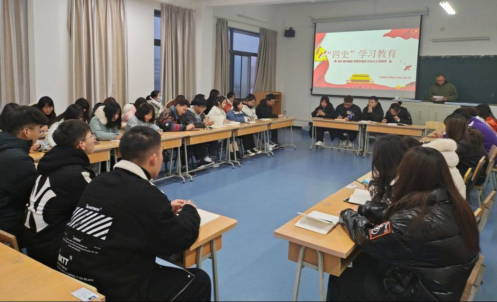 第三项,学科实践部负责人常江涛做《四史学习教育》发言,从中国共产党史、新中国史、改革开放史和社会主义发展史四个方面展开学习教育,以增强员工干部守初心、担使命的思想自觉和行动自觉。