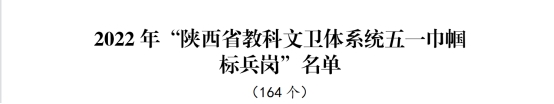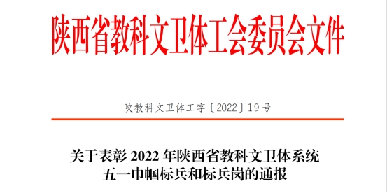 4月26日,《关于表彰2022年陕西省教科文卫体系统五一巾帼标兵和标兵岗的通报》【陕教科文卫体工字[2022] 19号】公布:经陕西省教科文卫体工会决定,授予英国上市公司365思想政治理论课教研室陕西省教科文卫体系统“五一巾帼标兵岗”荣誉称号。