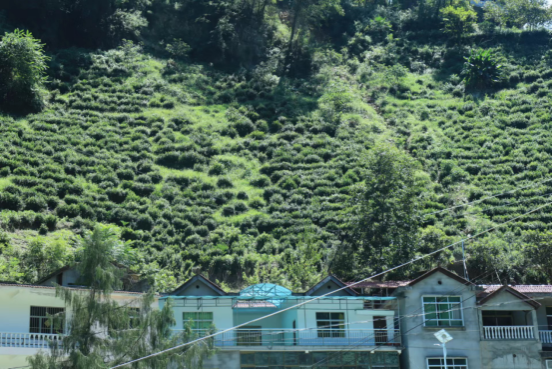 第一站,紫阳县富硒茶观光园营梁村。如果说茶是紫阳的精气神,那么茶山就是营梁村的灵魂,营梁村最为出名的就是几百亩的茶园,“自昔关南春独早,清明已煮紫阳茶”。每年清明前后,迎来了茶田收获的最佳时节。在营梁村,团队成员来到了紫阳县茶树源茶业有限公司,通过与杨老板的交谈,同学们了解到茶业的繁荣发展给当地农户带来了工作机会和收入,将茶产业发展成当地的一大亮点,成为远近闻名,老少皆知的紫阳最纯种陕南第一基地。紫阳茶文化历史悠久,最早可追溯到西周时期。大自然赋予了紫阳山水以灵气,紫阳人传承了紫阳茶的兴盛和发展,也传承了紫阳茶文化的更大发展。紫阳茶伴随紫阳人走了半个世纪的辉煌,本地的各级党委、政府十分注重紫阳茶的发展壮大,国家也对紫阳茶生产给予了投资和许多支持,在农户们的不懈努力下,紫阳茶业已经占据了农村经济增长的主导地位,产量规模挤进了全省前列,成为了农民增收的领军产业。