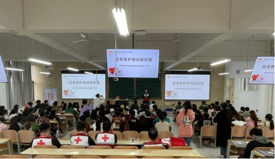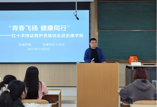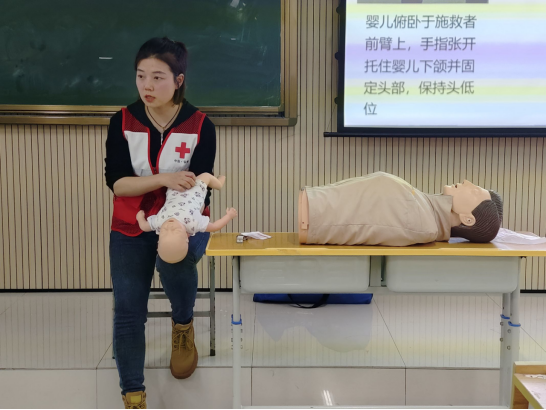 安康市红十字会应急救护师、安康职业技术公司护理公司骨干讲师禹西进行了日常急救理论、心肺复苏术、海姆立克急救法等内容的详细理论知识讲解与示范操作。