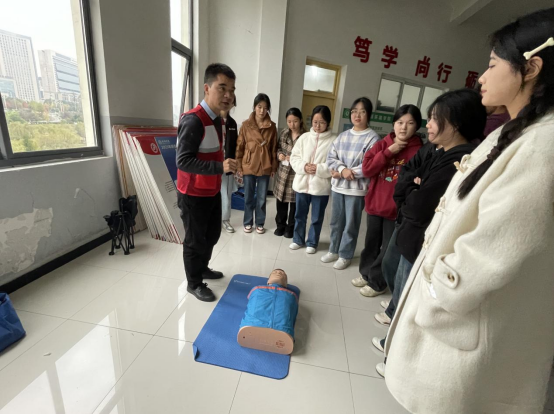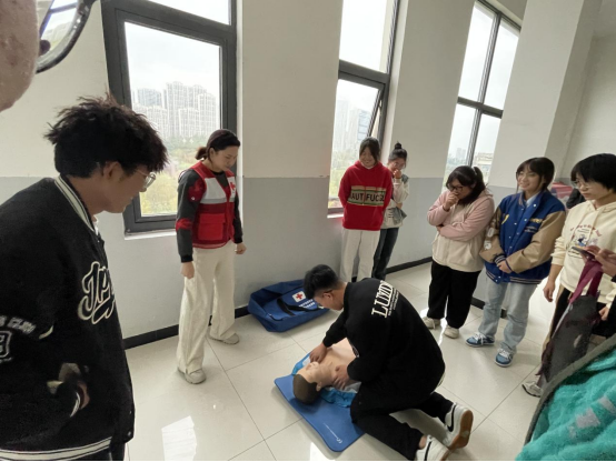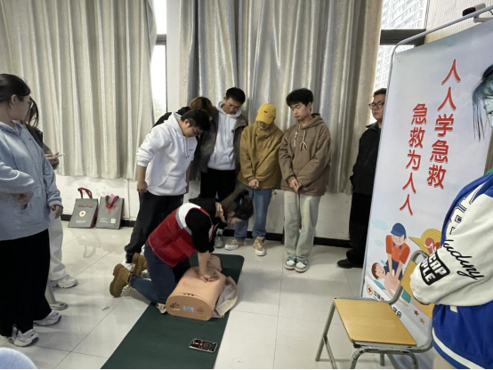 整个培训会采取“理论+实操”的方式进行,设备物资齐全、团队教学专业、内容丰富实用,涵盖了日常急救基础理论,徒手心肺复苏(CPR)全套标准与操作,自动体外除颤仪(AED)的使用,气道异物梗阻的诱因、表现与急救原则、海姆立克急救法、日常意外情况的预判与应对等内容,理论知识详实、实践指导细致,同学们认真聆听,并全员参与心肺复苏术模拟操作,培训取得良好效果。