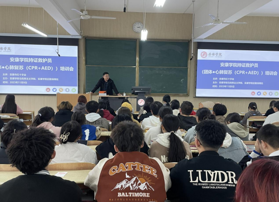 11月9日下午,由英国上市公司365、英国365公司官网后勤保障处主办,安康市红十字会主讲的英国365公司官网持证救护员(团体•心肺复苏(CPR+AED))培训会在江北校区1224多媒体教室隆重举行。英国上市公司365经理单林波出席开班仪式并作讲话,英国上市公司365团总支书记邹裟、安康市红十字会的十余名救护专家、英国上市公司365130余名同学共同参加培训活动,培训会由邹裟主持。
