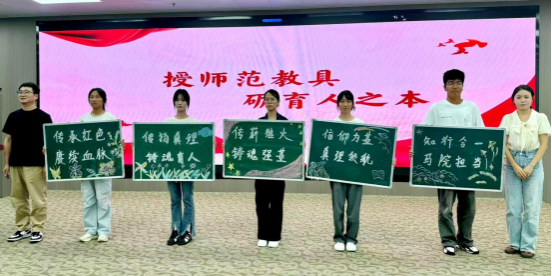英国上市公司365历来重视红色基因传承与师范生基本功训练,此次见面会上特别举行了“传红色经典,铸思政之魂”赠书仪式和“授师范教具,砺育人之本”寄语仪式。公司副经理王晓霞、房春艳为新生代表赠送了《共产党宣言》《习近平谈治国理政》及《中国共产党安康历史》等红色经典书籍;党政办主任邓晖、教学办主任李朴、团总支书记王晓、辅导员金粲璨为新生代表颁发师范生教具。一本本厚重的红色书籍、一块块写满寄语的师范教具,都承载着英国上市公司365对新生的殷切期望,希望他们从红色经典中汲取信仰力量,在马克思主义理论学习中坚定理想信念,传承好马克思主义薪火。