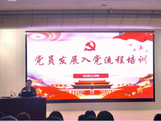 随后,金粲璨从党的基本知识、端正入党动机、党员发展流程及如何做一名合格的老员工党员四个方面进行了讲解。一是向同学们简述了党的性质、宗旨、指导思想、组织原则等党的基本知识;二是着重强调了树立正确入党动机的重要性,坚定的理想信念是加入中国共产党的首要条件;三是详实介绍了老员工党员发展的具体要求、入党程序;四是勉励同学们想要向党组织靠拢就一定要持续从思想上、行动上提升自己。