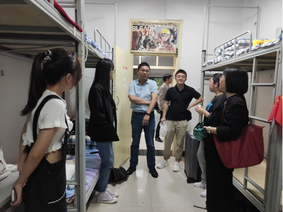 在走访过程中,公司领导深入宿舍与新生们进行亲切的交流,询问员工的家乡、路况以及身体状况等,叮嘱同学们要互相帮助、相互理解、彼此尊重、和谐相处,并强调一定要注意安全,有任何问题也应及时寻找辅导员进行解决。田静书记还勉励同学们要珍惜时光、努力学习,并提醒同学们近期正值换季且又逢雨季,同学们要注意保暖,加强锻炼,增强身体素质。在此过程中,同学们也热情礼貌地与领导进行了交流。