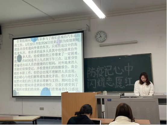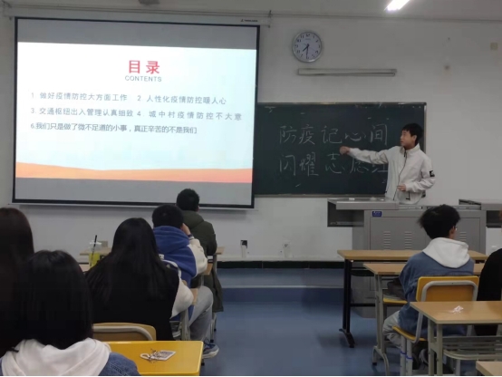 本次宣讲过程中,每一个宣讲人将自己在寒假过程中的志愿经历生动详细的讲述给同学们听,同学们也积极聆听,场面和谐友好。通过本次主题宣讲,同学们不仅了解到了疫情的来源,还学到了很多的防疫措施,广泛普及科学防护知识,为进一步增强公司师生的自我防范意识和防护能力,提升防控工作的科学性和有效性打下了坚实的基础。