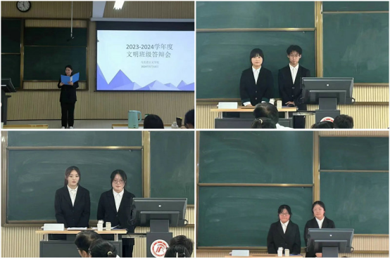各班级代表通过PPT和现场陈述,生动地向与会师生展示了班级在组织建设、思想政治教育、学风建设、班级管理、班级文化建设、班级特色文体活动等方面的有效做法和取得的成绩,为在场的观众呈现了一个个和谐友爱、团结向上、积极进取的班集体。