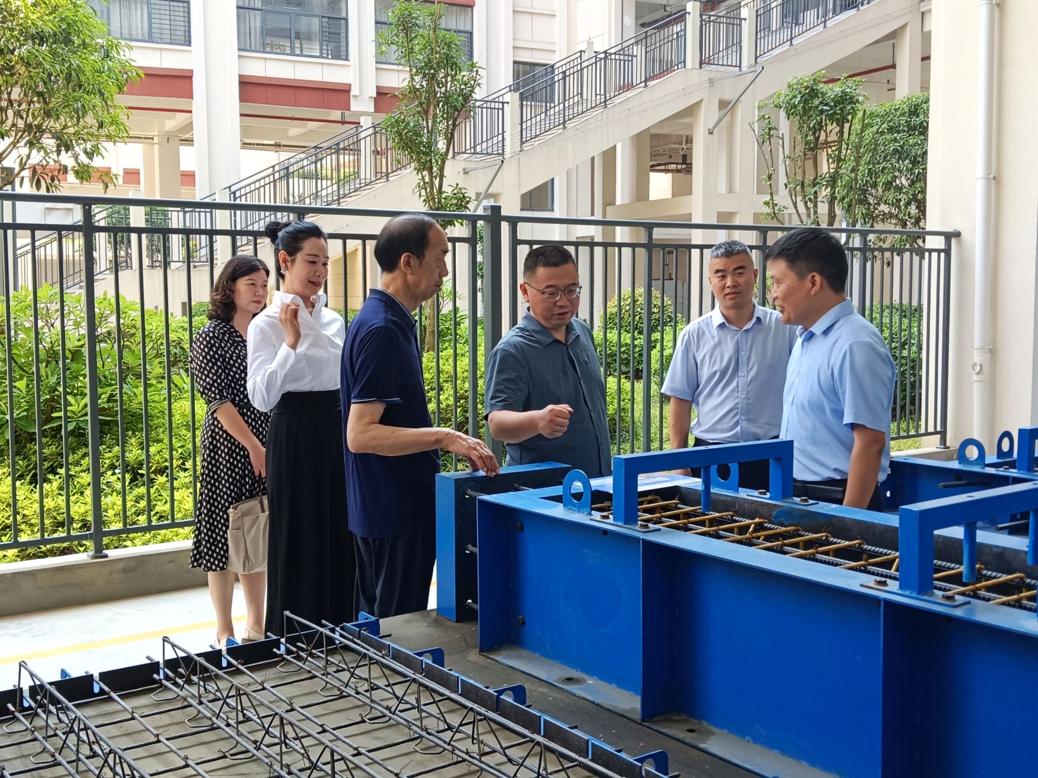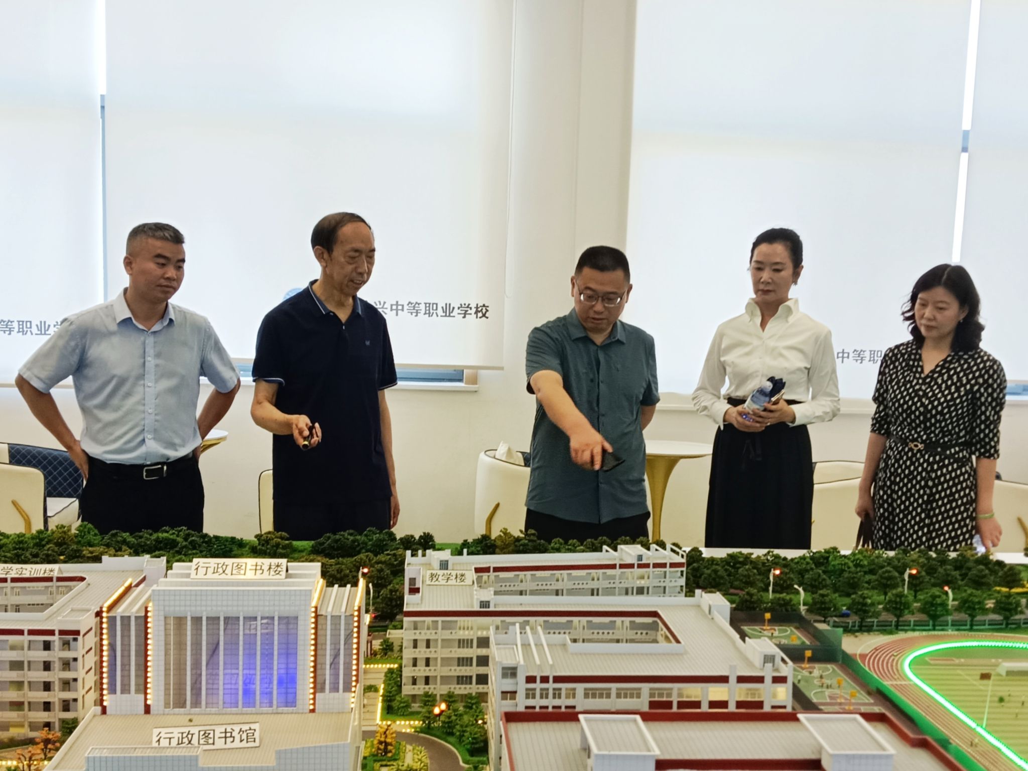余谦一行实地考察了长兴职校运动训练中心、数字建筑综合实训基地、心理健康教育中心、教师公寓等办学设施,详细了解了长兴职校专业设置和招聘人才需求情况。