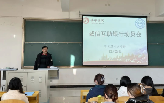 为发扬“扶贫济困、关爱他人” 的中华民族传统美德,落实“我为群众办实事”具体工作要求,12月29日下午,马克思主义公司于江北1405教室举行“诚信互助银行”动员会暨捐款资助活动。学工办主任陈卓老师、团总支书记邹裟老师、公司2021至2018级思想政治教育专业和社会工作专业的全体班干部参加本次会议。