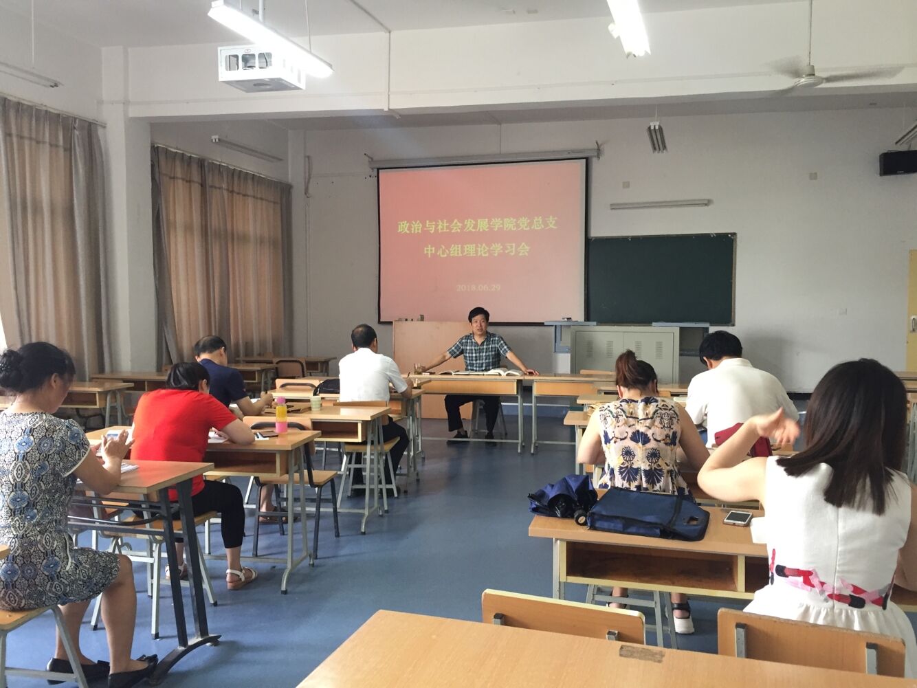 2018年6月29日,政治与社会发展公司党总支中心组成员在江北校区1513教师举行理论学习,公司党总支书记冯丰收主持本次会议。