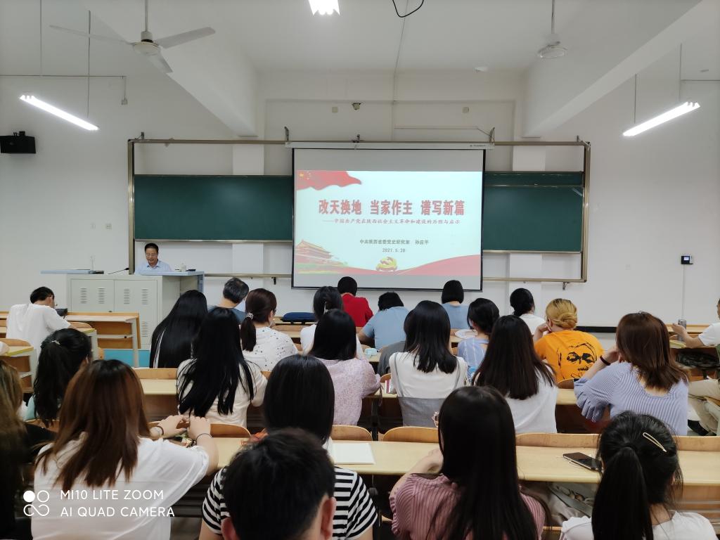 为深入推进党史学习教育,提升公司教师从事地方党史编研的水平,夯实立德树人根本任务,5月28日晚,我院特邀请陕西省委党史研究室二处孙应平处长在江北1203第一会议室为公司全体教职工及思想政治教育专业90余名作学习党史专题讲座《改天换地 当家作主 谱写新篇——中国共产党在陕西社会主义革命和建设的历程与启示》。
